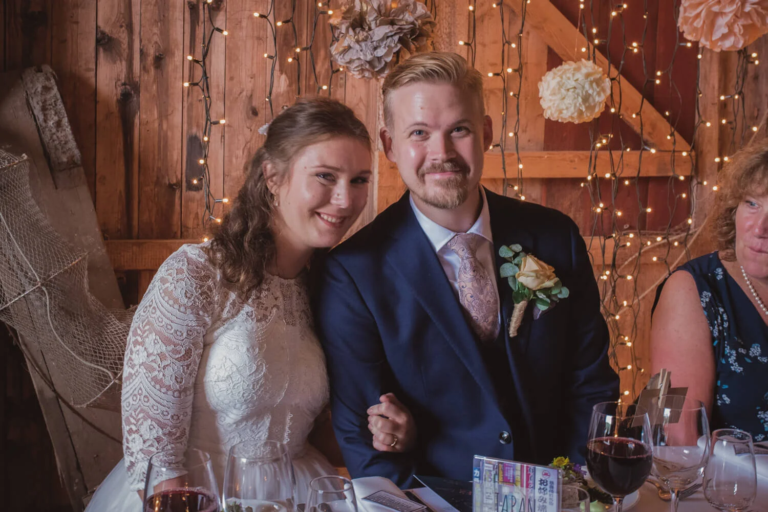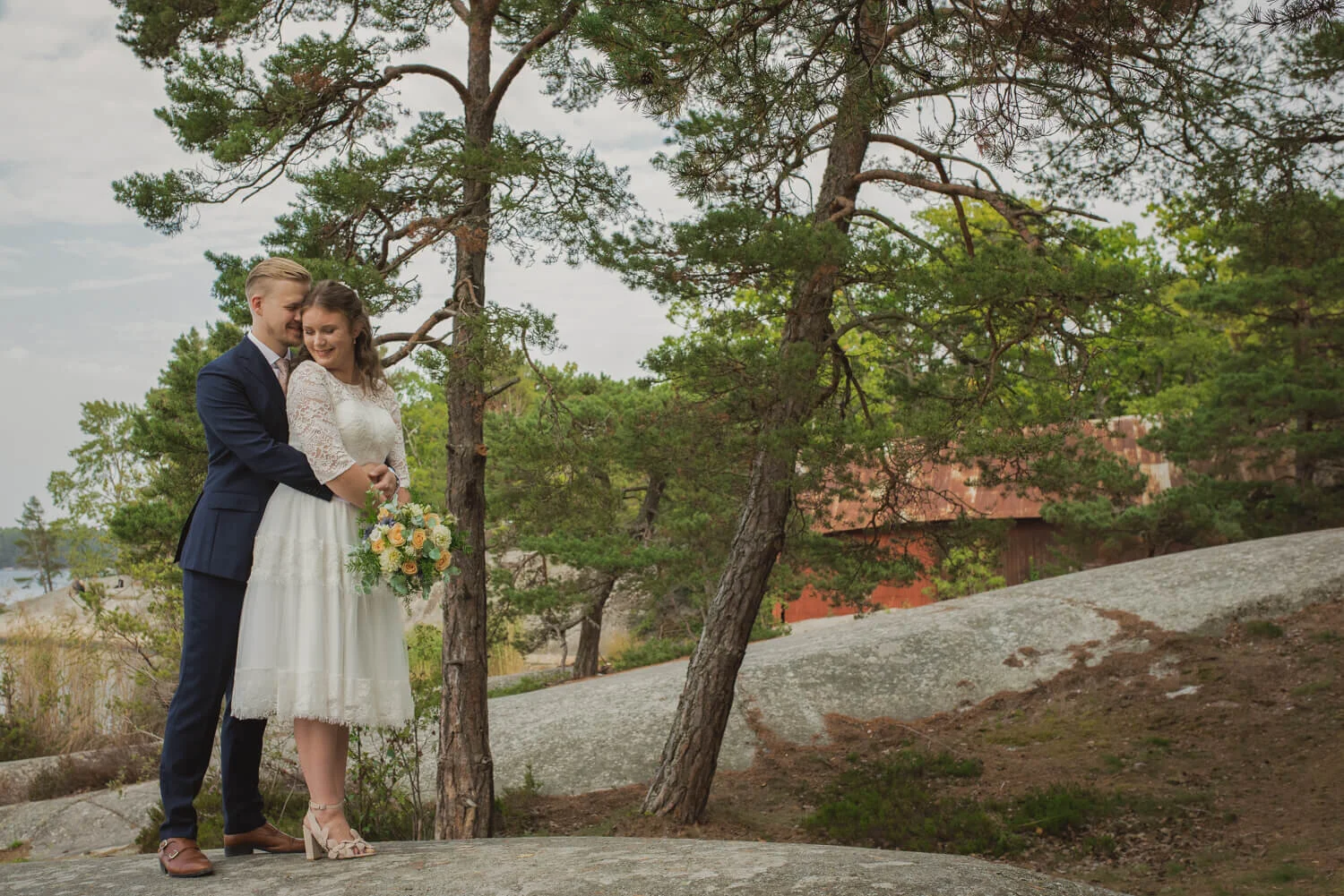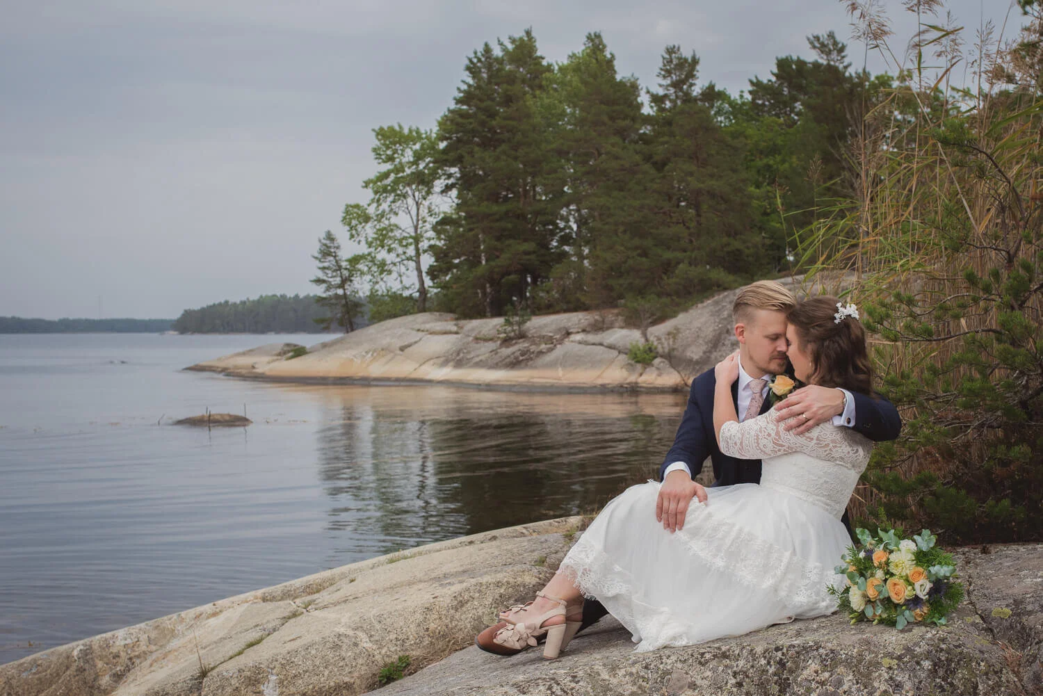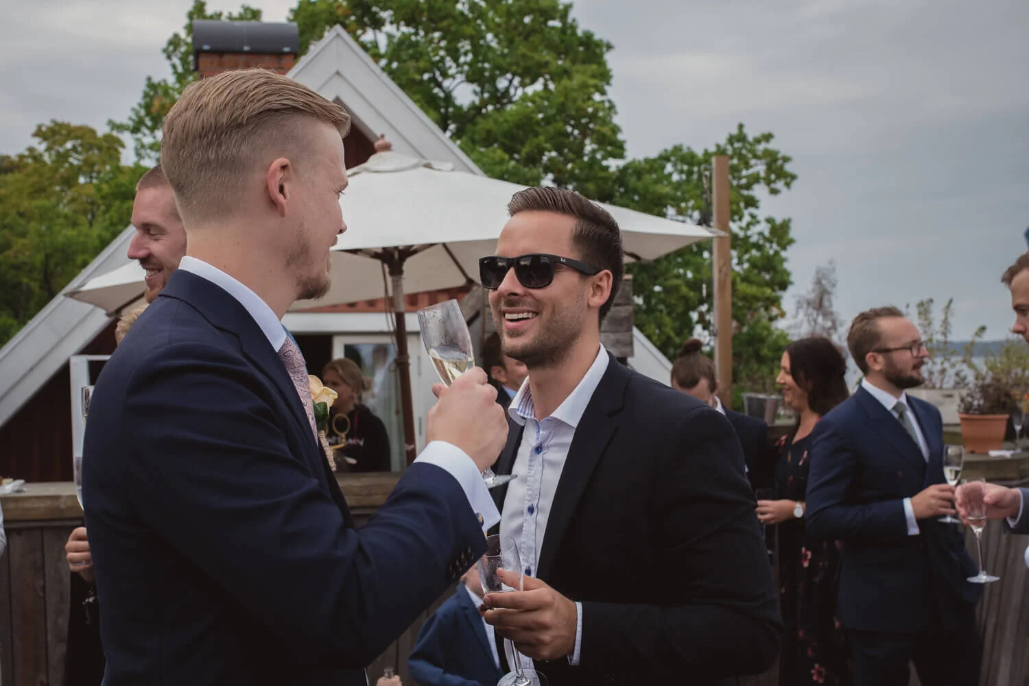 I början på hösten, precis när löven börjar fundera på att skifta i färg, men medans värmen fortfarande kan tillåta ett dopp från båten, så höll Carolina & Dennis sitt bröllop på Finnhamn i Stockholms skärgård. Det var en avslappnad och härlig dag med gäster från hela landet och från andra sidan Atlanten. Carolina var fantastiskt söt i sin korta klänning och jag fick äkta skärgårdskänsla när jag såg henne första gången och kom att tänka på Malin i saltkråkan i sin brudklänning. Skärgårdsmiljön behöver inte så mycket utsmyckning för att bli speciell men detaljer är ju alltid roligt och Carro & Dennis hade lagt ner mycket omsorg i sin dukning där varje bord hade en koppling till en speciell plats eller händelse i deras liv, med massor av roliga dekorationer som hörde ihop med temat. Sliphuset på Finnhamn är inte den traditionella bröllopslokalen, utan verkligen unik och hur mysig som helst! Tillsammans med maten och personalen är verkligen en perfekt inramning till en kärleksfest i skärgården!
